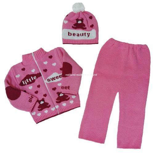 "МоёДитё" костюм для девочки из 3-х предметов "Мишки" тёмно-розовый "Лотос"